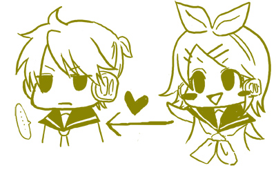久しぶりにニコニコ行って、久しぶりにボカロの曲でも聞こうかと動画徘徊してたらですね、なんかね、鏡音いいなあって、うん。今までミク以外真面目に聴いたことなかったんで、改めて聞いてみて良いなあ、と。