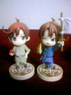 先日買ったAPHのフィギュアですが、全部で9種類なんですね、あれ。ブラインドパッケージで何が入ってるか分からないんですが、この前は北イタリアちゃんが出たんです。で、もう1個か2個買おうかなーって思いまして、どうせなら南イタリア欲しいなー、ロマーノが欲しいなー、北と南兄弟で並べたいなー、ロマーノ…(以下略)みたいな感じでダラダラ喋ってたら某新倉さんが