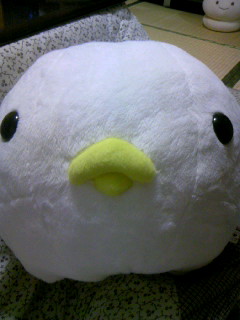 添付は白い鳥のぬいぐるみ。
