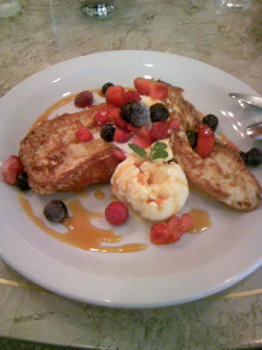 その後お昼ご飯をイムズで食べたんですが、カフェでフレンチトースト食べまして、それが生クリーム乗ってるわアイス乗ってるわで、見た目は可愛いんですけど、きっとカロリーが半端無いです。