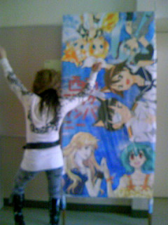 学校について、取り敢えず黄色のメッシュ入れて、展示の準備。