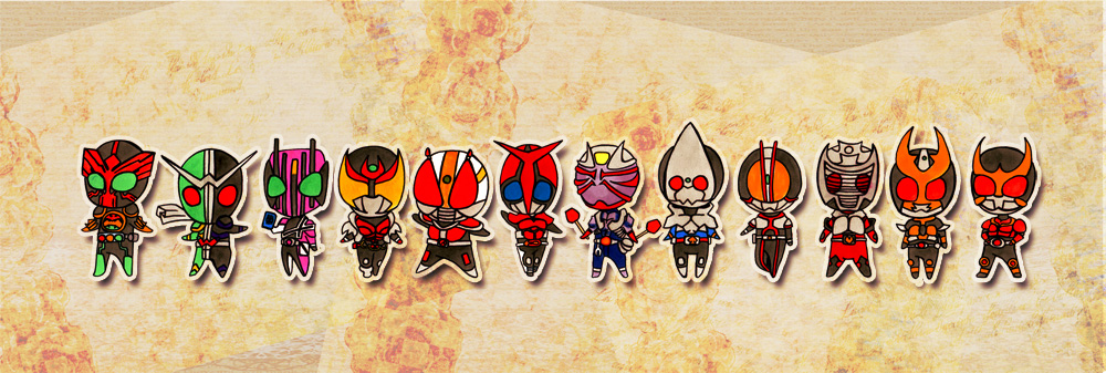 平成ライダー集合。この絵柄のシールを無料配布しました。